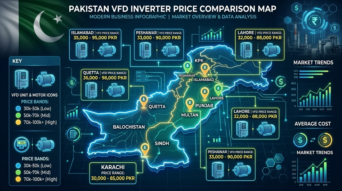 In 2026, VFD inverter prices in Pakistan stabilized due to better availability from brands like INVT, SAJ, and Inverex. Prices vary by seller, including Daraz and local markets in Karachi and Lahore. The overview covers popular 3-phase models for solar pumps and tube wells, with approximate prices that should be verified for discounts or warranties